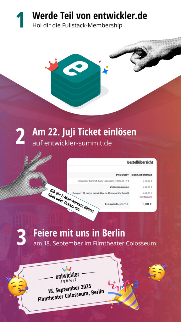 Werde jetzt Fullstack-Member und sei unter den Ersten, die ihr Ticket für den entwickler Summit 2026 sichern!